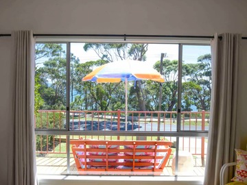 Bedroom with views to water
