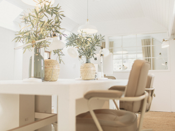The Studio - a beautiful blank canvas with whitewashed concrete floors, natural light, accessible through double wooden doors on the ground floor. The Green Room/ Meeting Room - included in all studio hires. This stylish space is perfect for all of your styling and beauty needs. Features include a Samsung Frame TV and mood boards to make your own. The Second Floor - Whitewashed wooden floors throughout, featuring a huge communal table, leather stools and desk chairs, styled with greenery throughout. Perfect for workshops, bespoke gatherings, or as a backdrop for photoshoots.