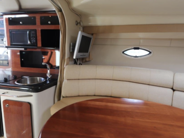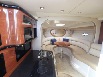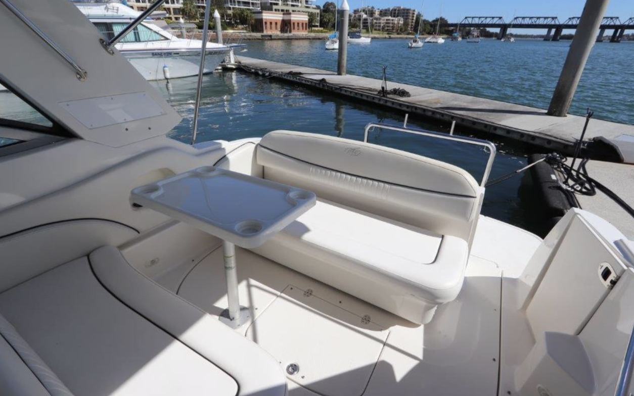 This model is an excellent entry-level quality family sports cruiser. With sleeping for 4 a well-equipped galley, enclosed head & spacious cockpit she is ideal for family cruising. Perfect for a day of entertaining for 10 people. Powered by upgraded 5.0 Litre Volvo GXI's with Neutrasalt she is also fitted with a generator for self-sufficient cruising with 240v power.