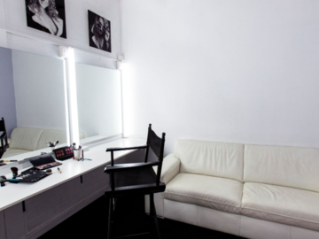 This stylish, beautifully appointed space boasts all the amenities you could need for your own personal makeup or styling studio. Including a full length work-station large enough for up to 3 stylists working at the same time. Large wall of mirrors, beauty strip lighting, numerous under and over bench power points, hanging rack for wardrobe and a selection of client seating varying in height for both hair and make up requirements.