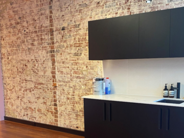 Historic brickwork walls for photoshoots + large windows looking out to beaufort st against brick