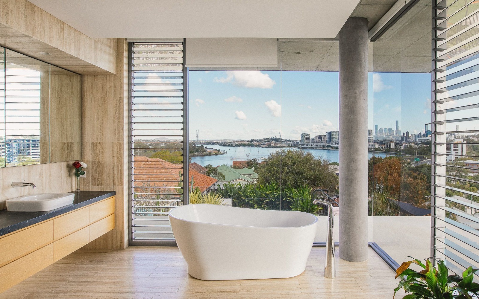 Beautiful Modern Bathroom with City and Ocean Views