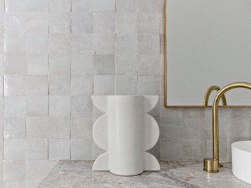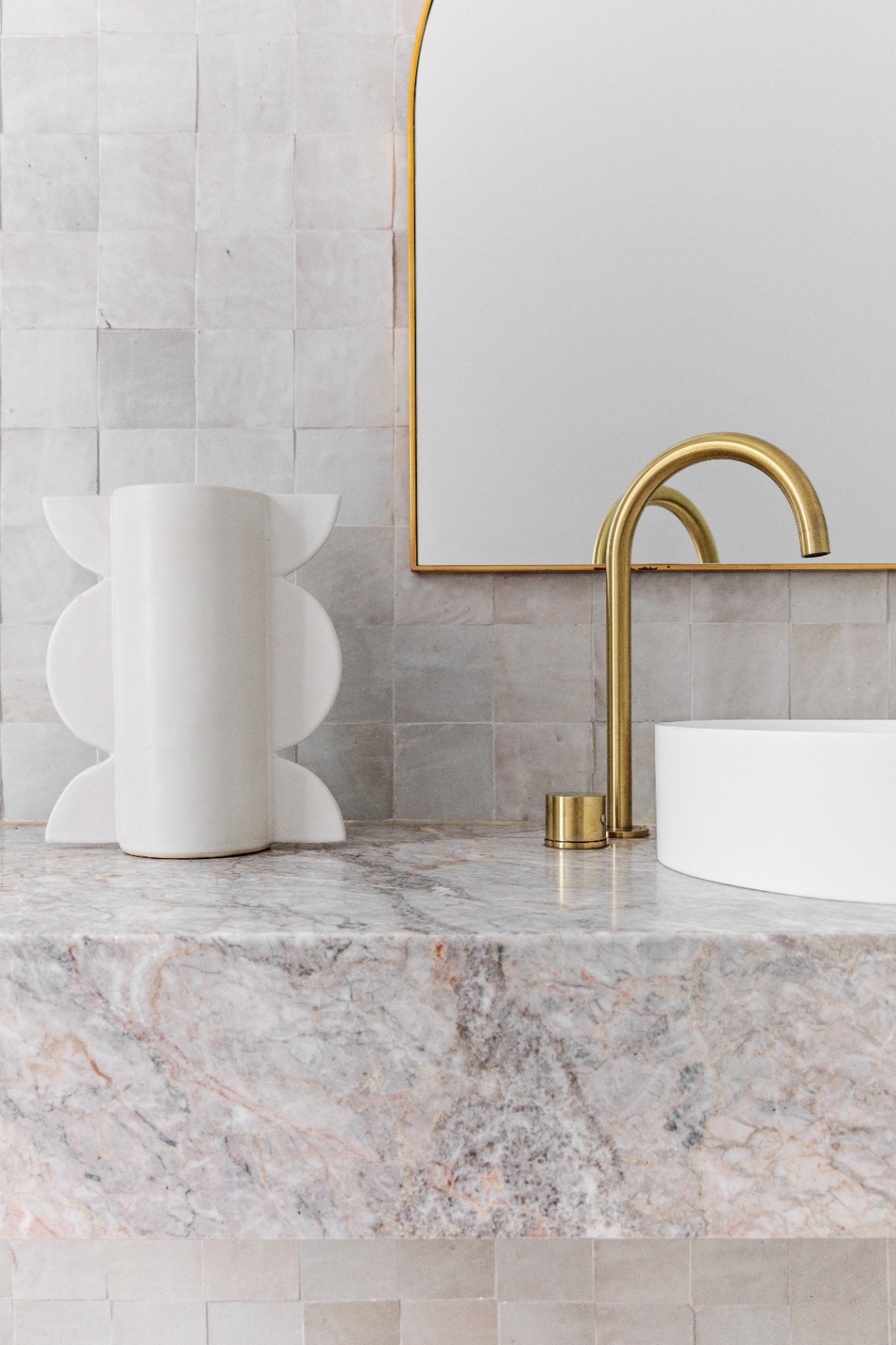 Elegant Bathroom with Intricate Marbles and Brass Features