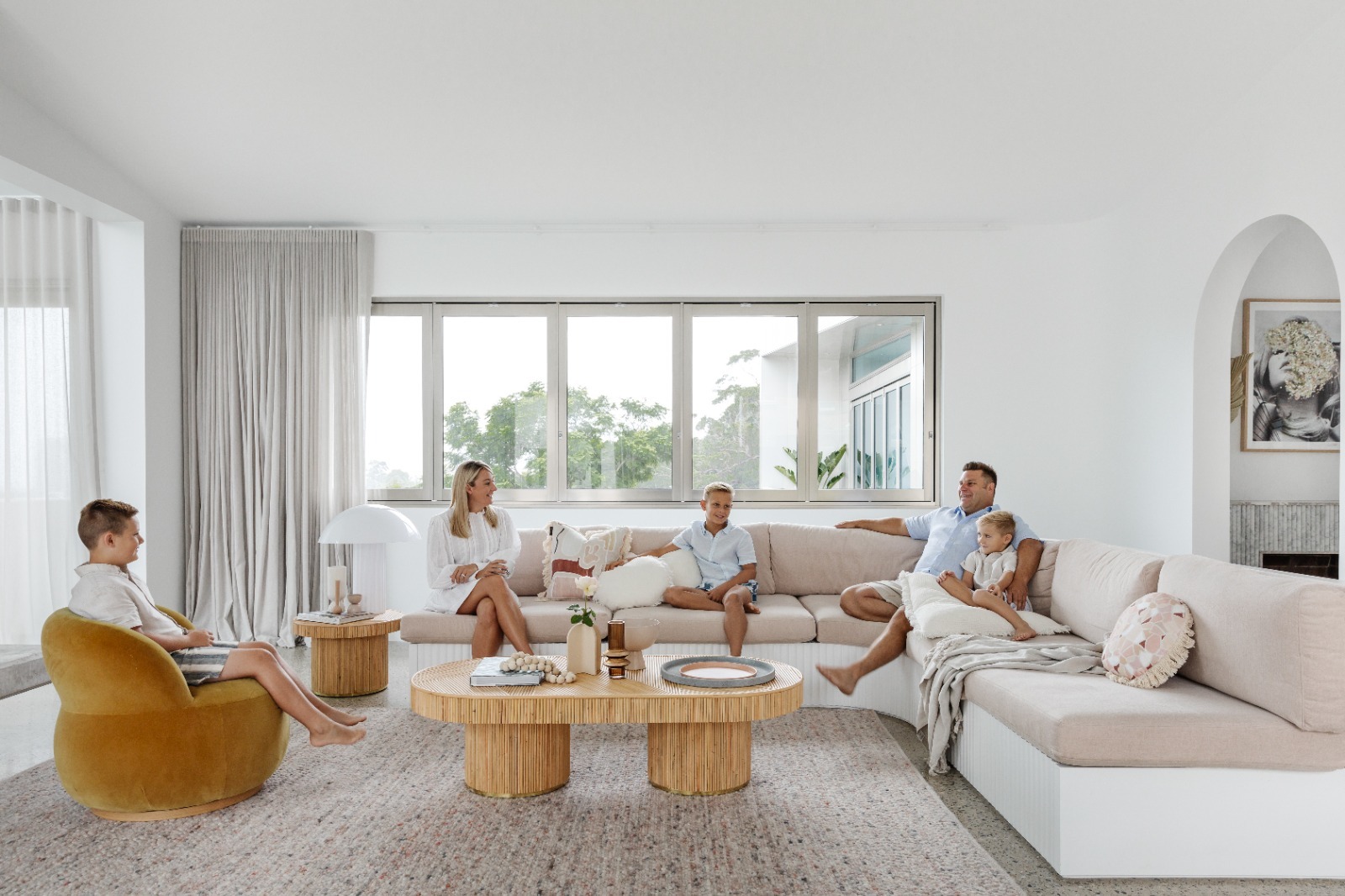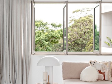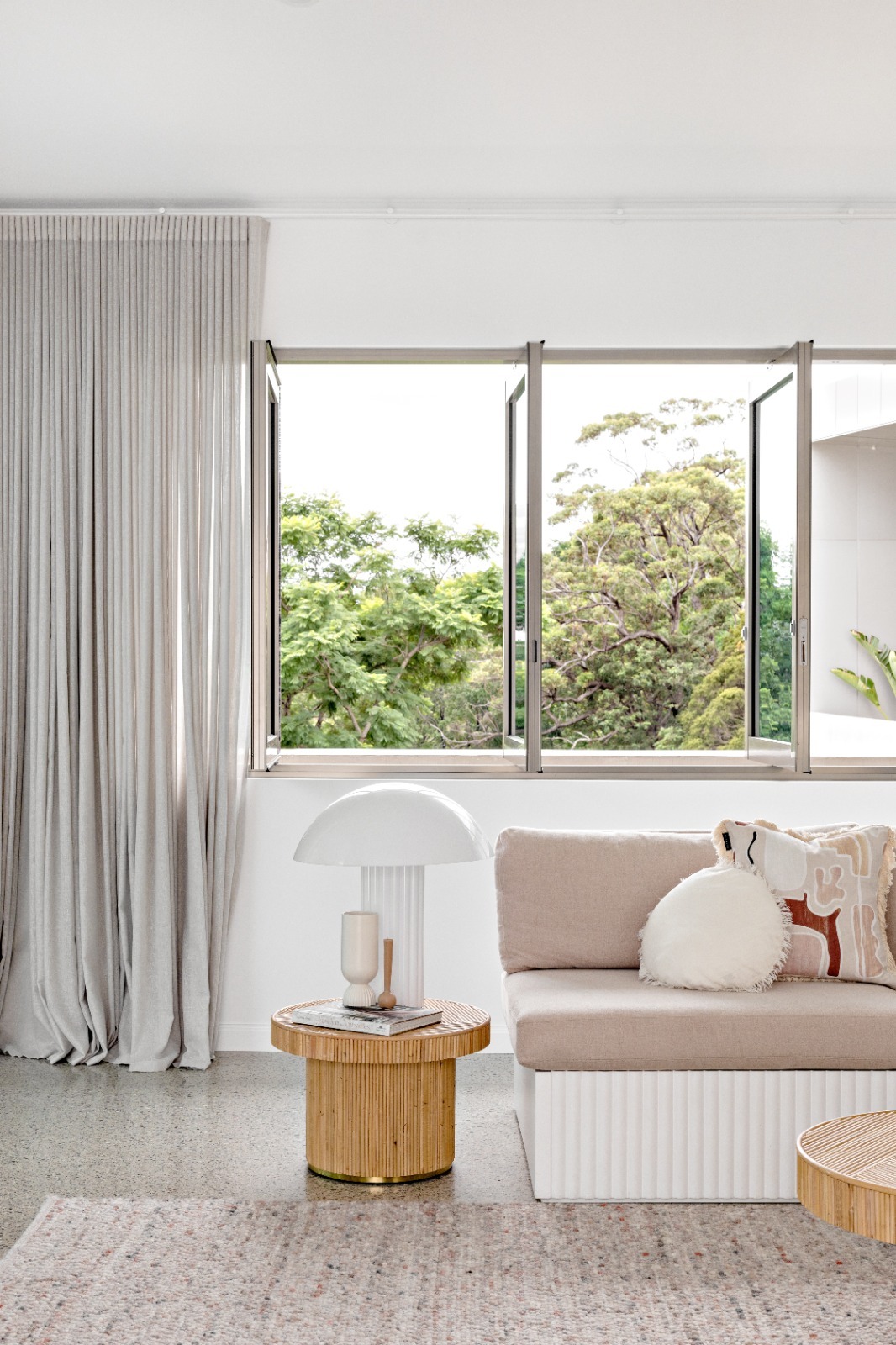 Neutral, Calming and Warm Lounge with Pivot Windows