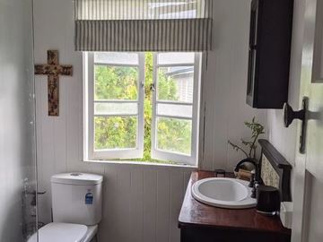 Fully appointed country kitchen with all the mod-cons, a huge bench for catering and lovely pantry. The Dining room with extendable table, combustion fire, silverware and everything you need for a lovely dinner party. Two toilets & bathrooms, with a soak room featuring an old cast-iron bath.