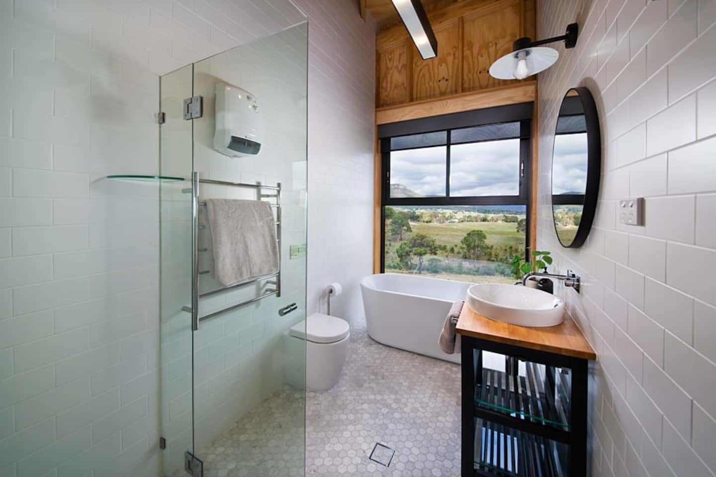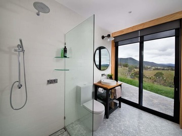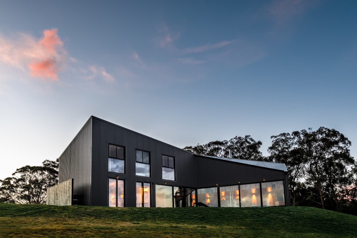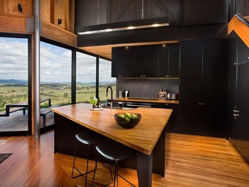 The Black Barn is a newly built modern 'barn' set on 16 acres (although the sheep and cows use most of this space) with uninterrupted views of the Blue Mountains escarpments and the Great Dividing Range. The barn is architecturally designed and takes advantage of the incredible views. The interior has a rustic but luxurious feel that blends into the country setting.