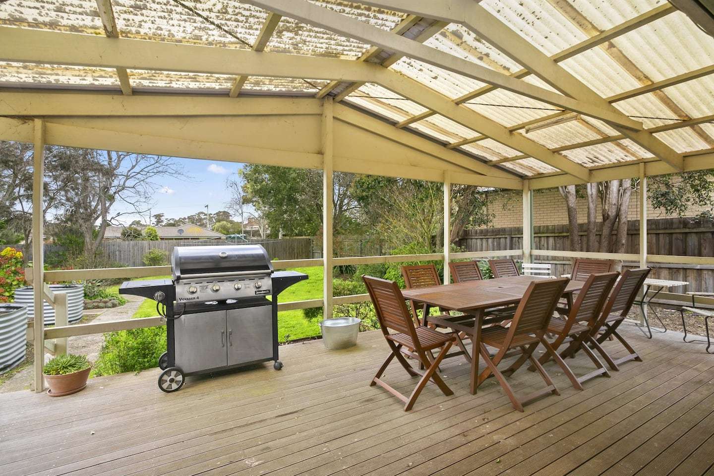Large Covered Alfresco Space Overlooking the Fenced Garden