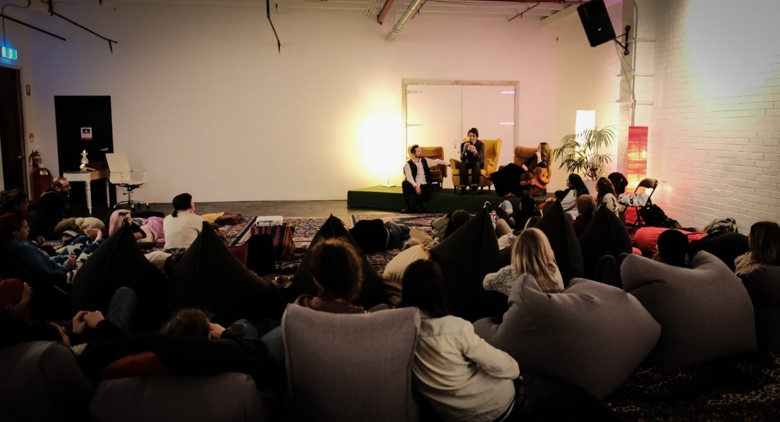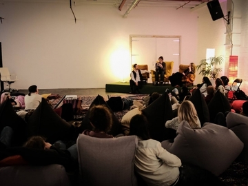 It is a place to cultivate and release kinetic energies and this room is designed to inspire motion. It is mostly used for group workshops, but is also used for art exhibitions, events, and fundraisers and anything that requires low levels of light and soundproofing like movie screenings and theatre shows.