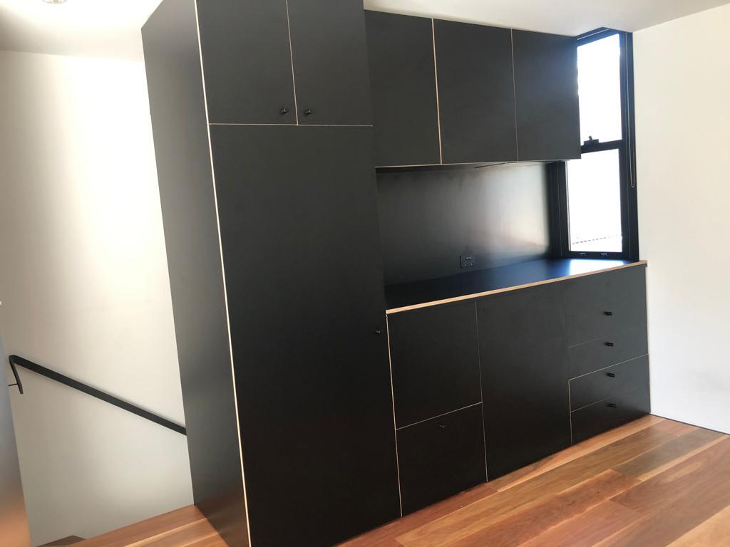 Studio Above our garage 13sq with black cabinet.