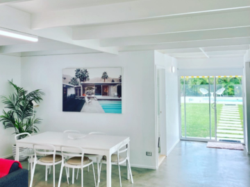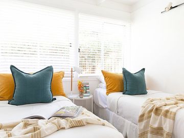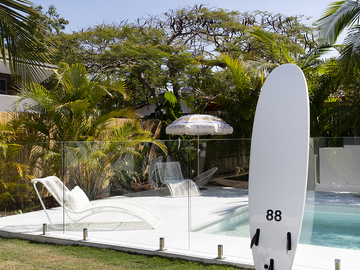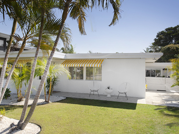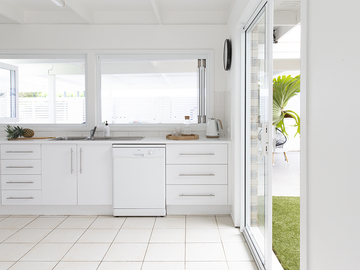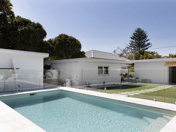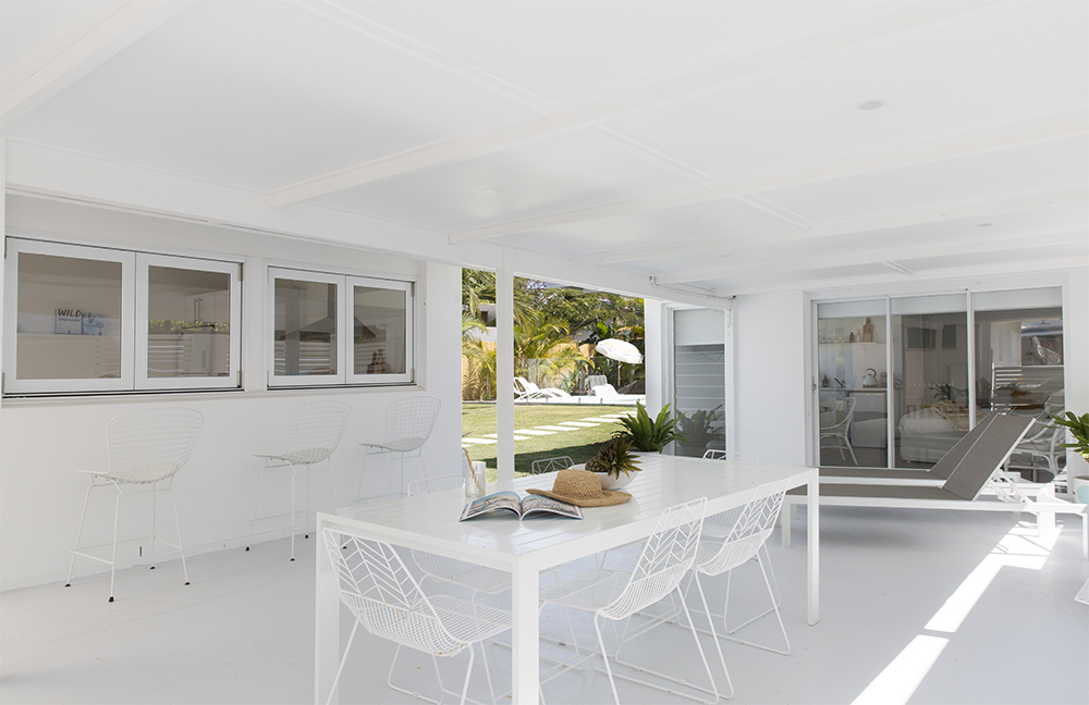 The house has polished concrete floors, exposed beams, undercover entertaining.