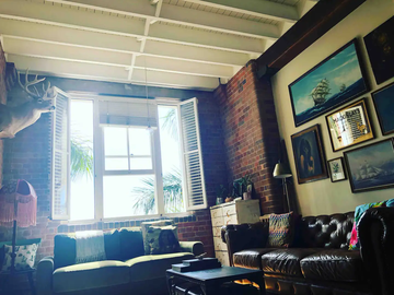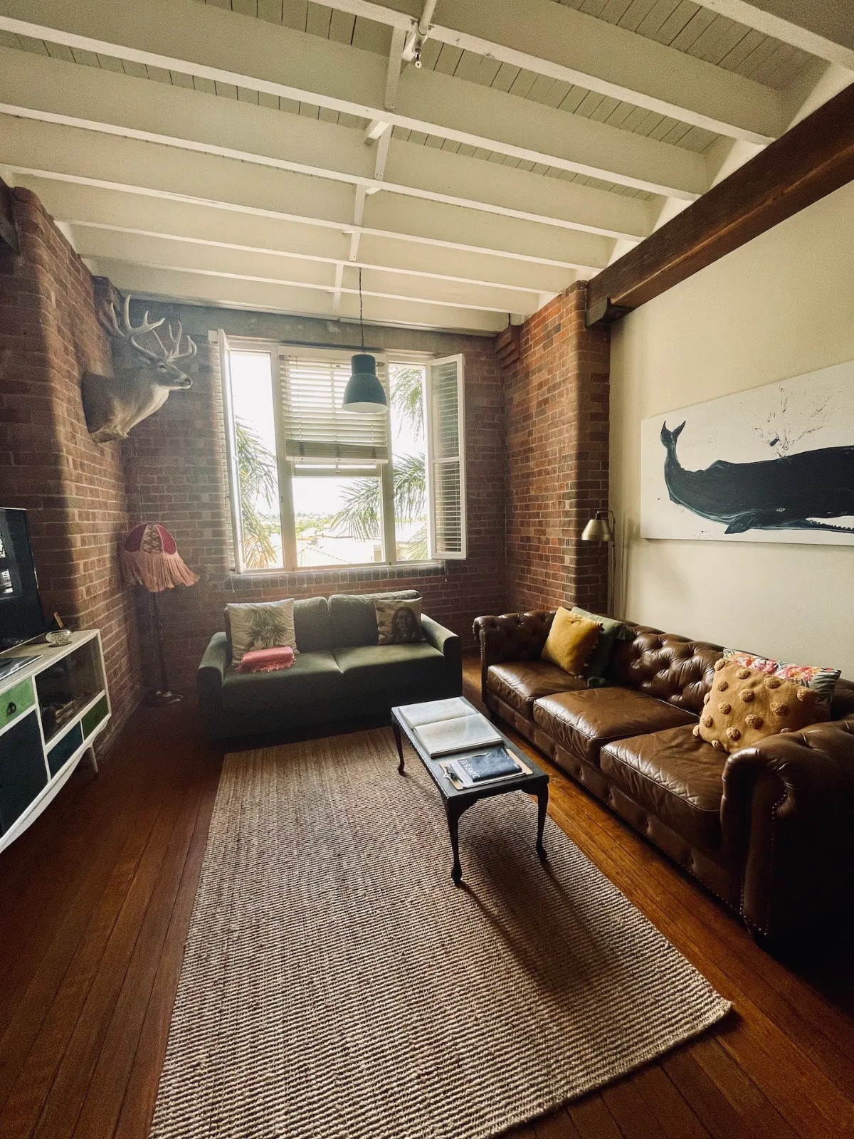 This apartment boasts high ceilings, exposed brick walls and vintage surf culture antiques. The space is spacious and soaks up the light through the huge bay windows. The apartment has a very relaxed feel with beautiful furnishings, river breezes and wonderful views.