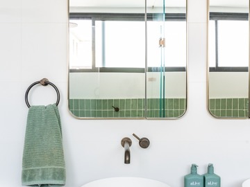 2 Full Bathrooms: Dive into luxury with our unique bathroom designs, including a striking pink main bathroom and a refreshing green ensuite.