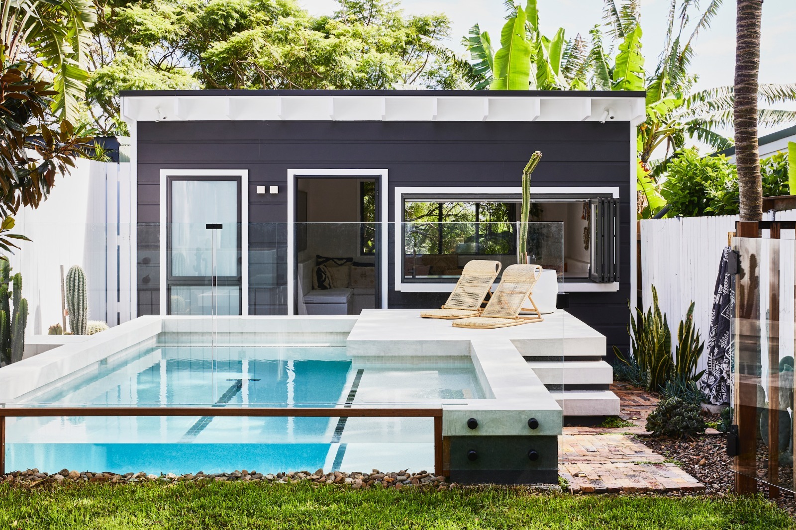 Fully Detached Cabana: Enjoy the serene ambiance of our minimalist, Mediterranean-inspired cabana, just steps away from the sleek, polished concrete pool.