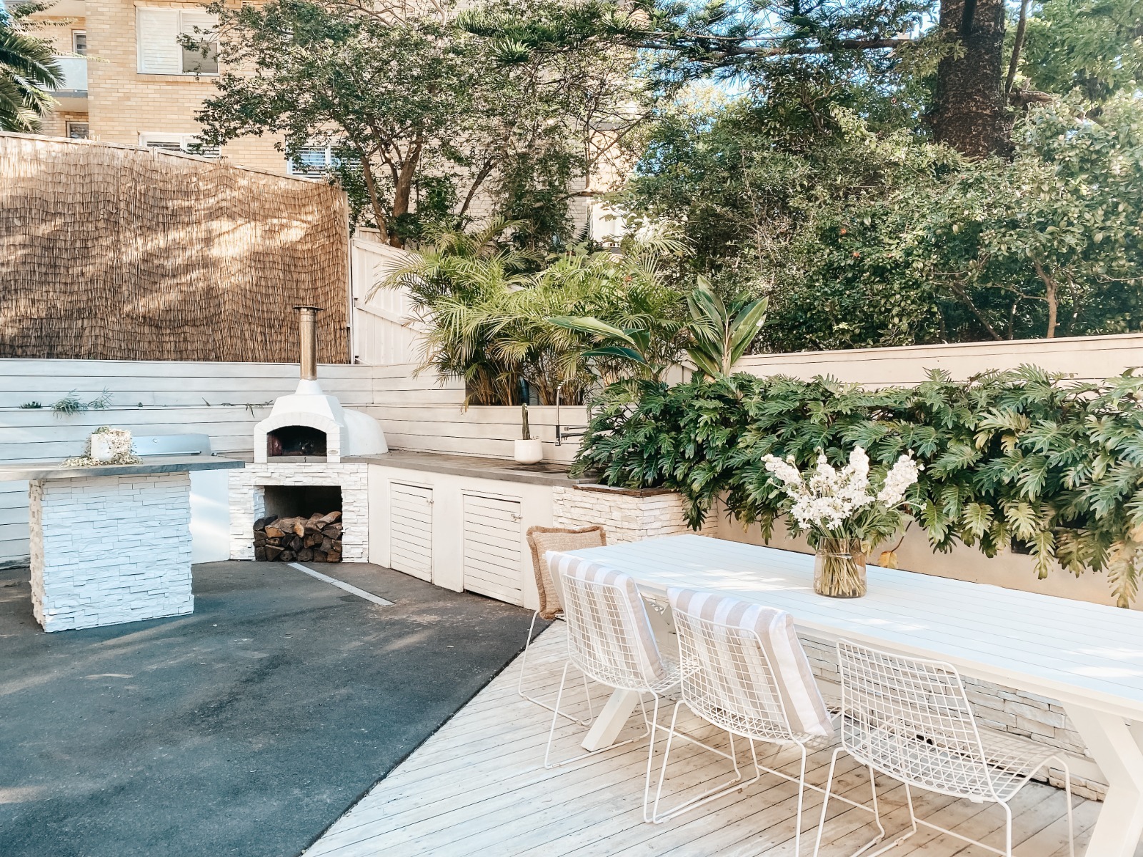 A light filled Mediterranean Coastal inspired 3 bedroom home with open plan design featuring a spacious living room, bi-fold doors and sunlit dome skylight. The large north facing white courtyard and pizza oven is seen from the parents retreat and provides a picture perfect backdrop opportunity.