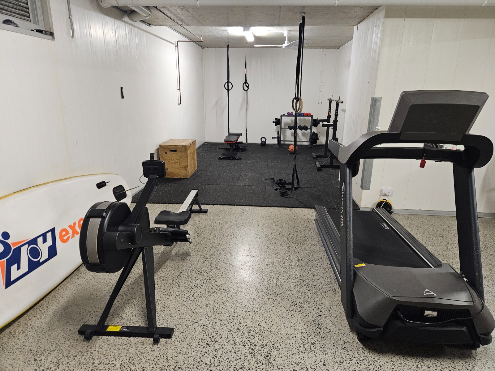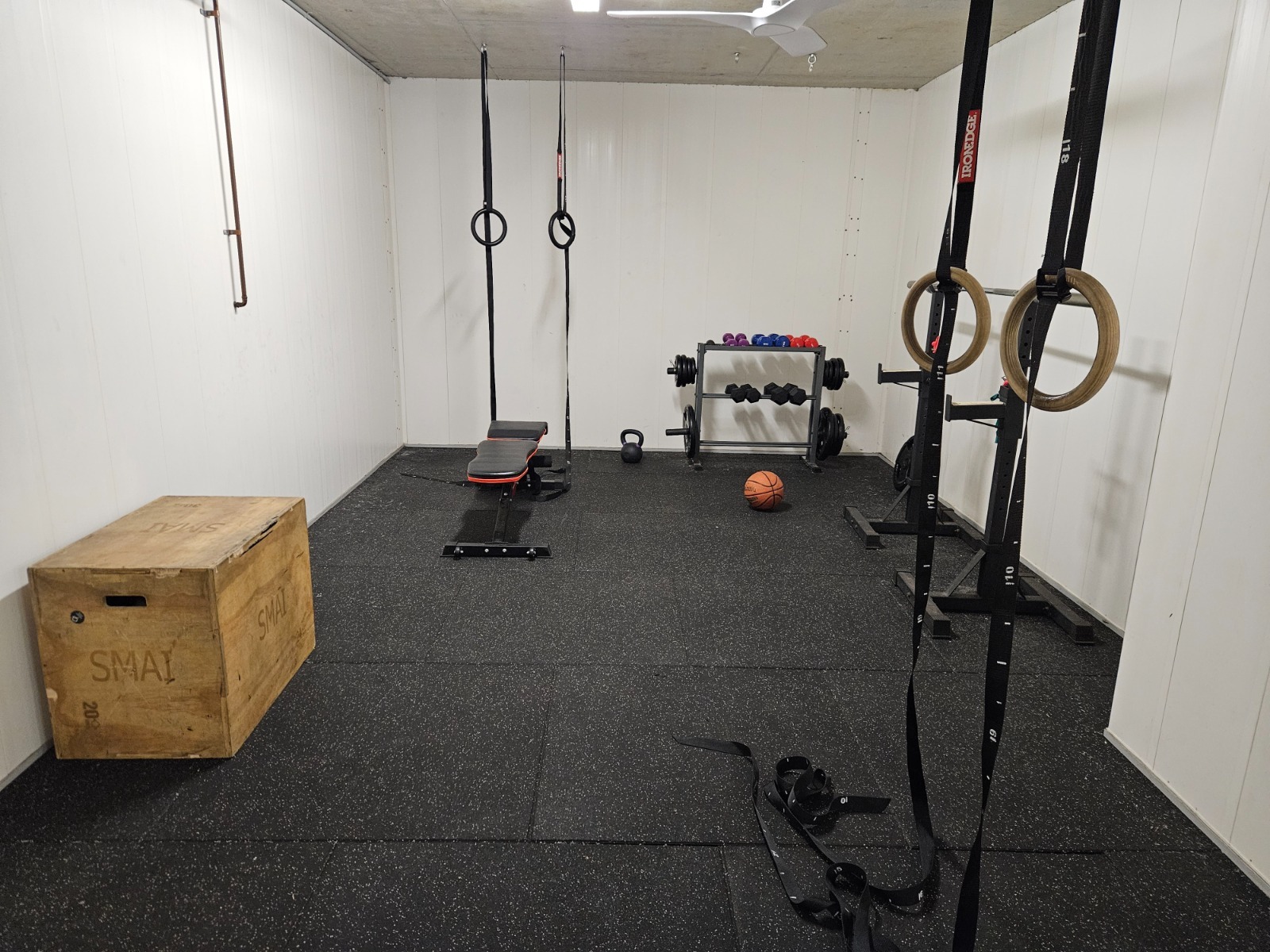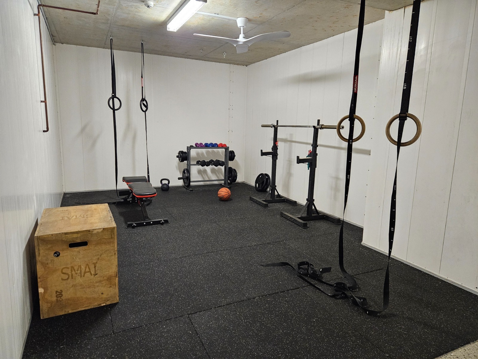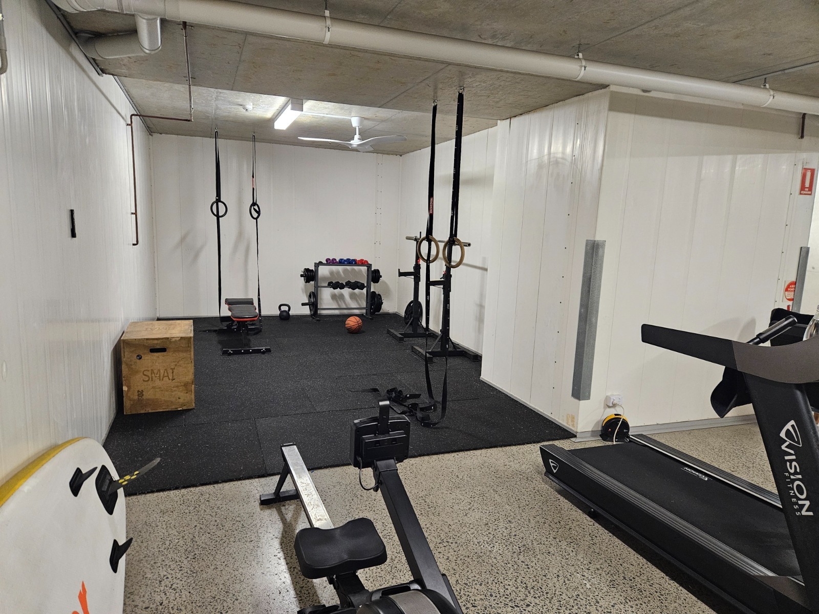 Small home gym for hire! Clean, quite space setup in the basement of our apartment block. Accessible straight from the street. Perfect for fitness film production and photoshoots. Equipment includes treadmill, rower, weights rack, bench press, plyometric box, gym rings x 2, exercise ball and mat, and other loose equipment.