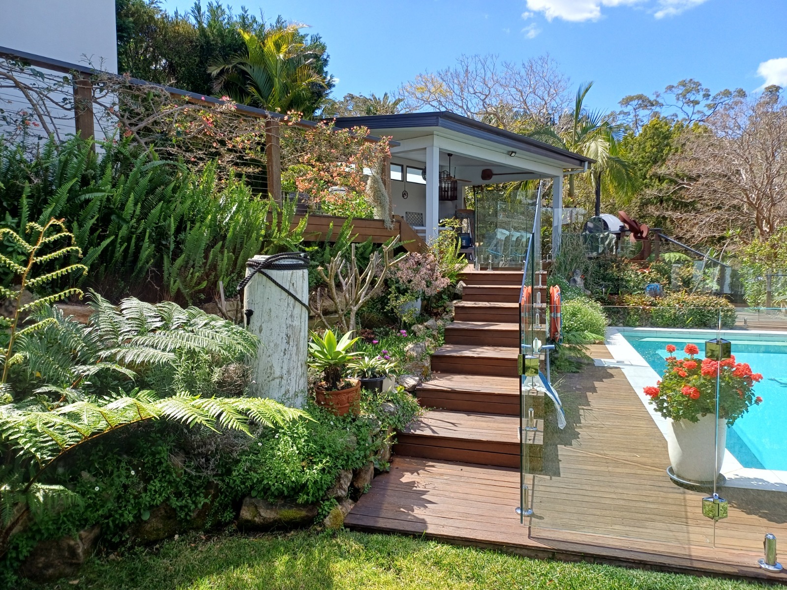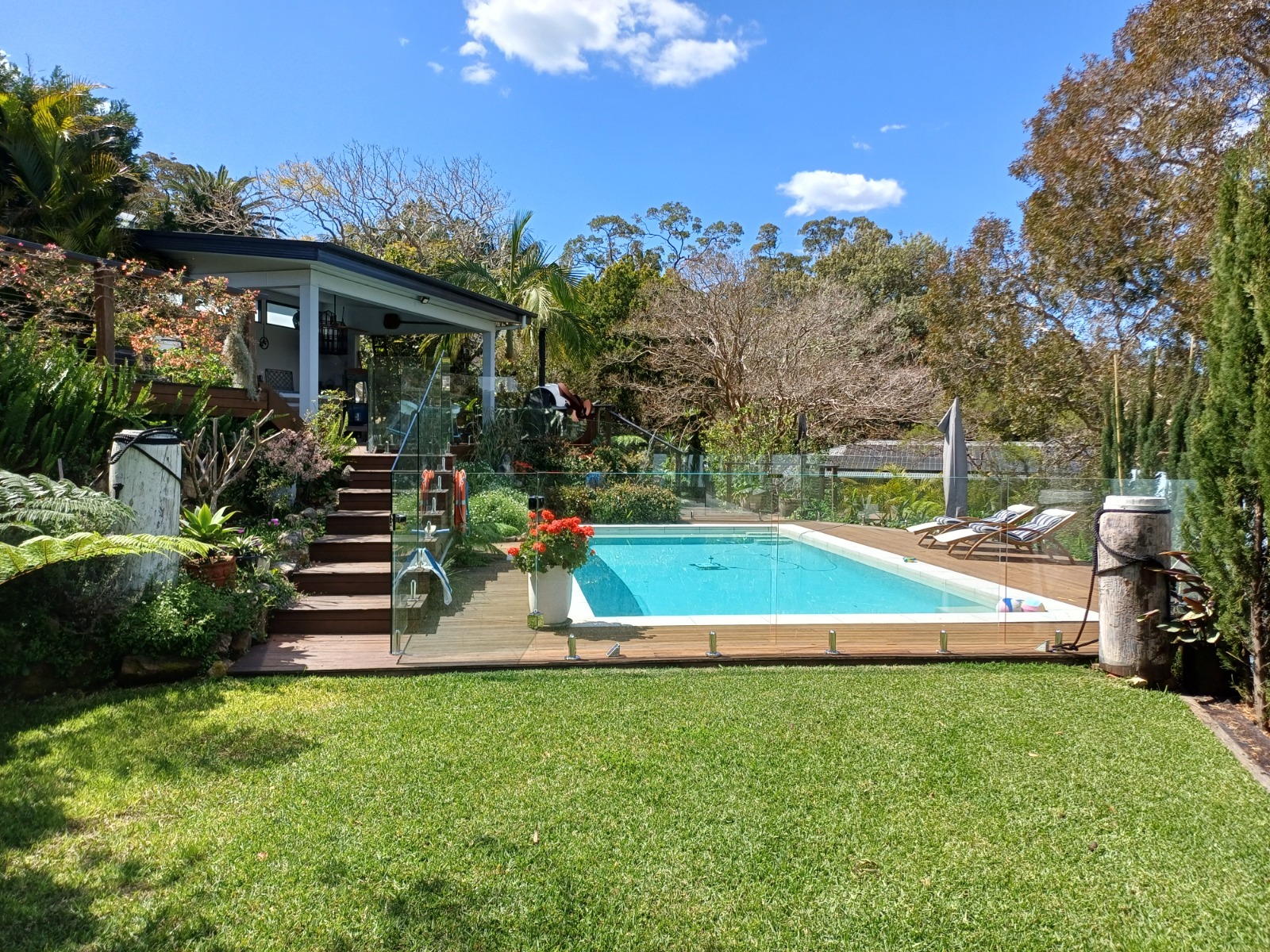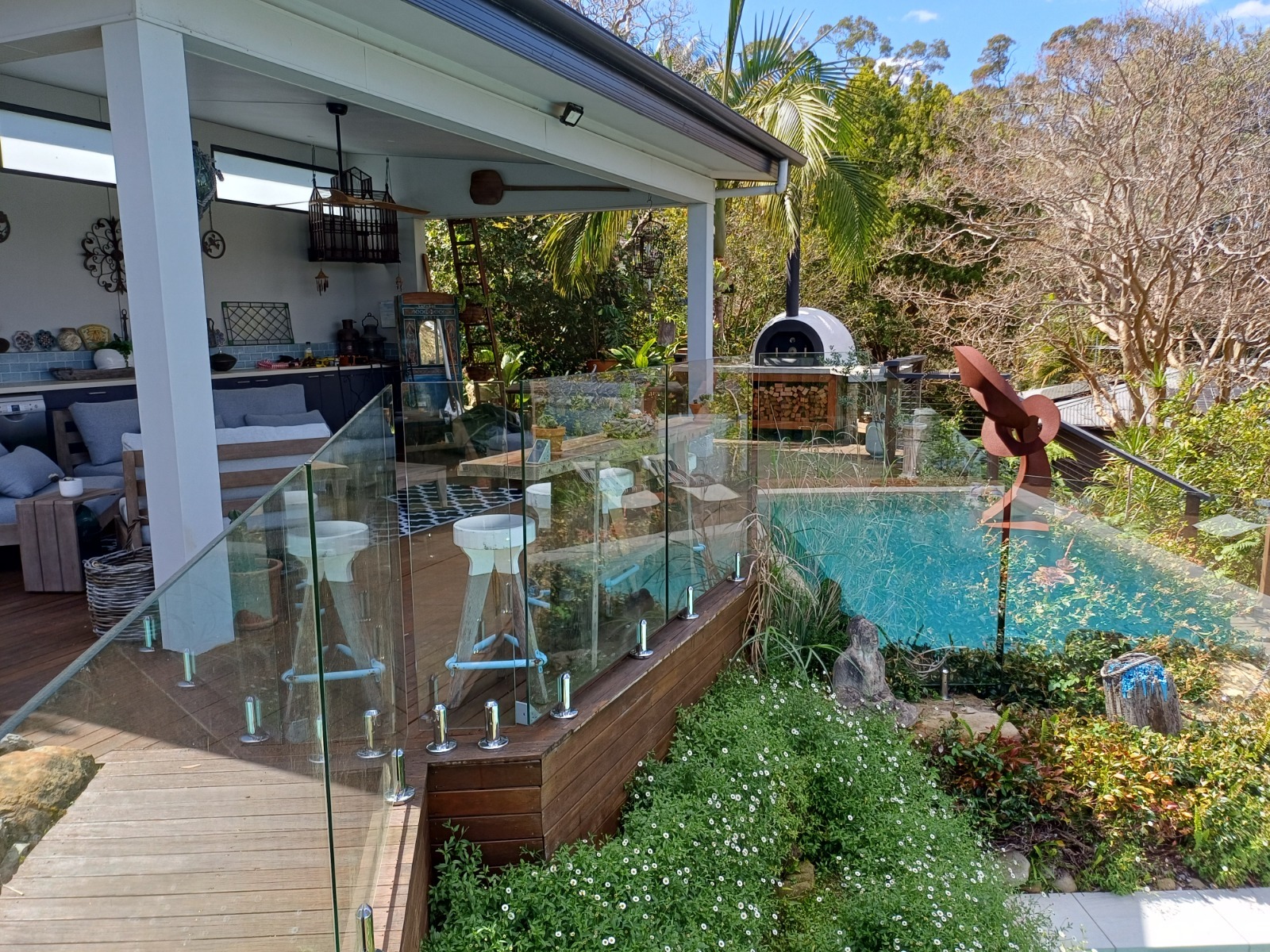 Resort style cabana and pool area c/w pizza oven, also available access to rear of the main house featuring patio and porch with build in BBQ's.