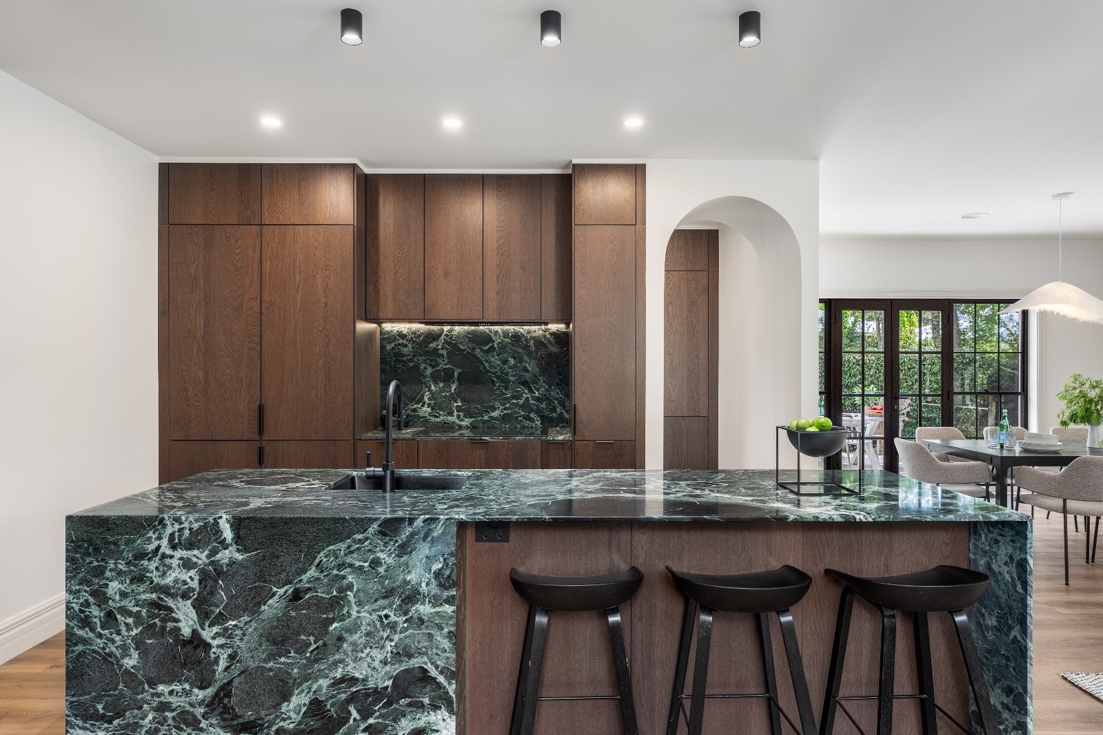 Behind its timeless façade, this five-bedroom residence has been completely reimagined into a sophisticated family retreat that balances grandeur with warmth and comfort. Every space has been meticulously considered, from the curved fireplace and bespoke joinery to the calming neutral palette and natural textures that create an effortless sense of cohesion.