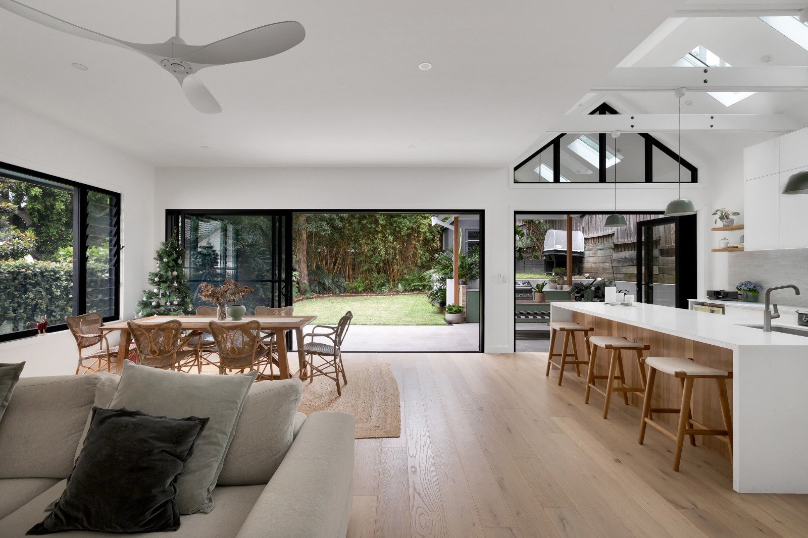 Welcome to our beautiful (circa 1915) Bungalow style home 'Caroline'. Original at the front and expanding into a newly renovated coastal/ scandi style extension. The kitchen and dining room are high ceilinged and light filled.