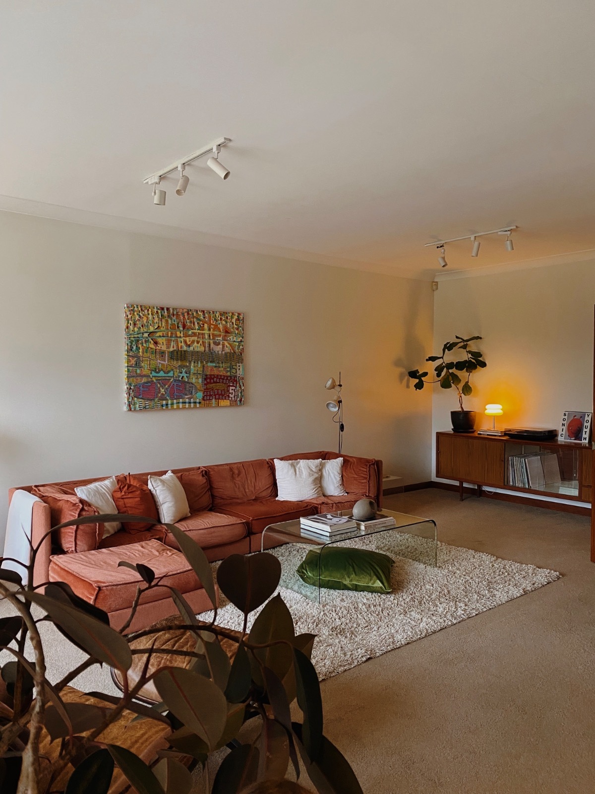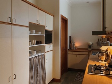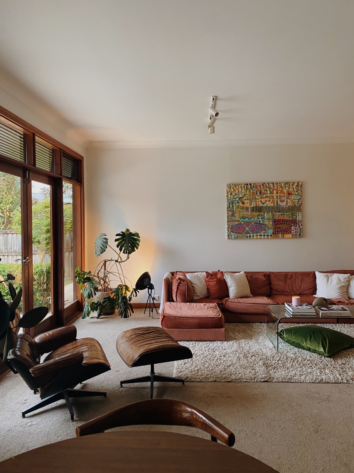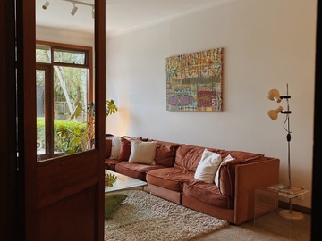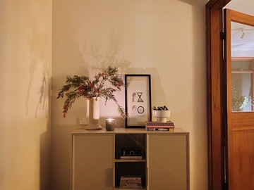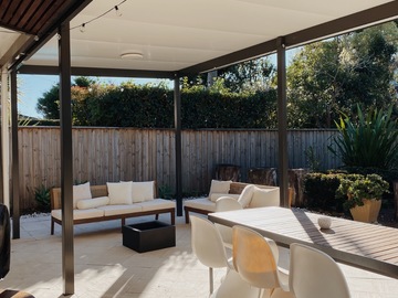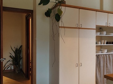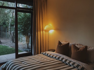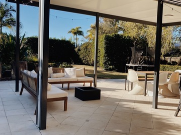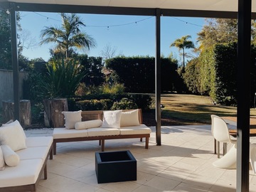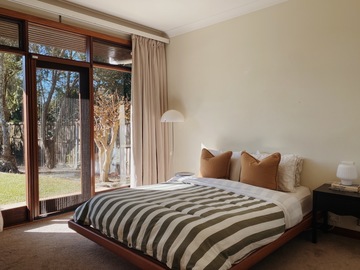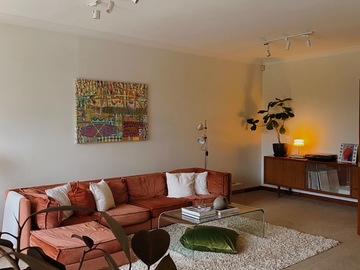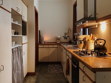 Cozy midcentury modern family home in Sydney. Set on an expansive north-facing 1,250 sq meter block with beautifully manicured gardens that bask in sunlight all day long. Original 1970’s Bosch kitchen, timber features throughout, and floor to ceiling windows / french doors that capture lots of light. Massive backyard features a large entertainers patio, stone fire pit and washing line. Two kids bedrooms and a master bedroom with carefully curated vintage furniture are also available. Easily accessible flat block with driveway and carport to accommodate 5 off-street parking spots plus amble street parking.