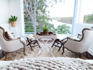 Large Bedroom with Water Views and Four Poster Bed