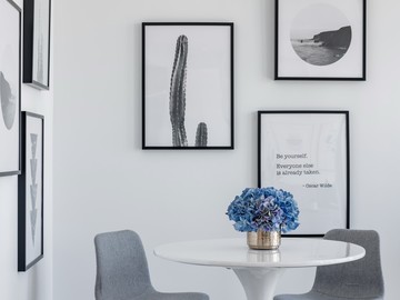 Dining Area with Tulip Table and Near Floor to Ceiling Windows