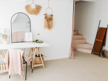 We love our soft backgrounds, neutral backdrops of pink and white walls. Original parquetry flooring with our resident fiddle leave leaf fig makes for a chic studio vibe . Outdoors you can utilise our leafy green aspect and ancient fig tree. Ask if our chic apartment add on 'The Hideaway' is available for your booking.