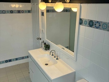 The house has just been remodeled, and has a cottage / beach feel. There is plenty of natural light from floor to ceiling windows. And outside area has been created with a pool for seamless living, and there is plenty of garden. Quiet area with easy access and plenty of parking.