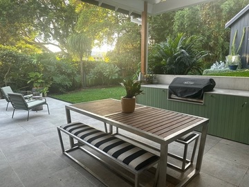 Welcome to our beautiful (circa 1915) Bungalow style home 'Caroline'. Original at the front and expanding into a newly renovated coastal/ scandi style extension. The kitchen and dining room are high ceilinged and light filled.