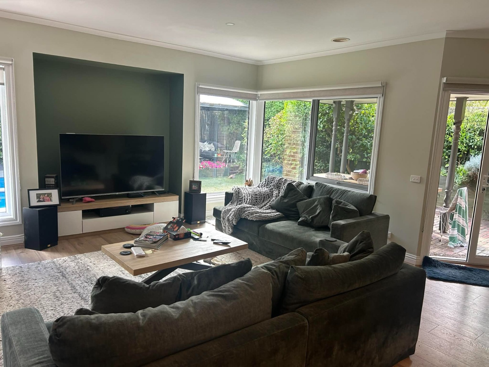 Open plan living with lovely backyard